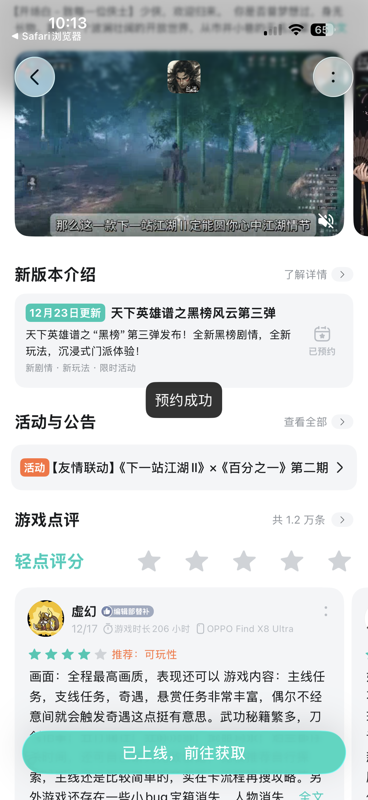 参与黑榜风云预约活动免费获得武器特效和外观礼包”。