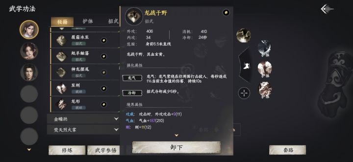 现在心法用的是九阳神功,被动用降龙十八掌的两个,周天点了一圈,但是淬炼五脏不够了,运功心法用的是吸星以及九阳等 但是王小虎我还是打不过,求教