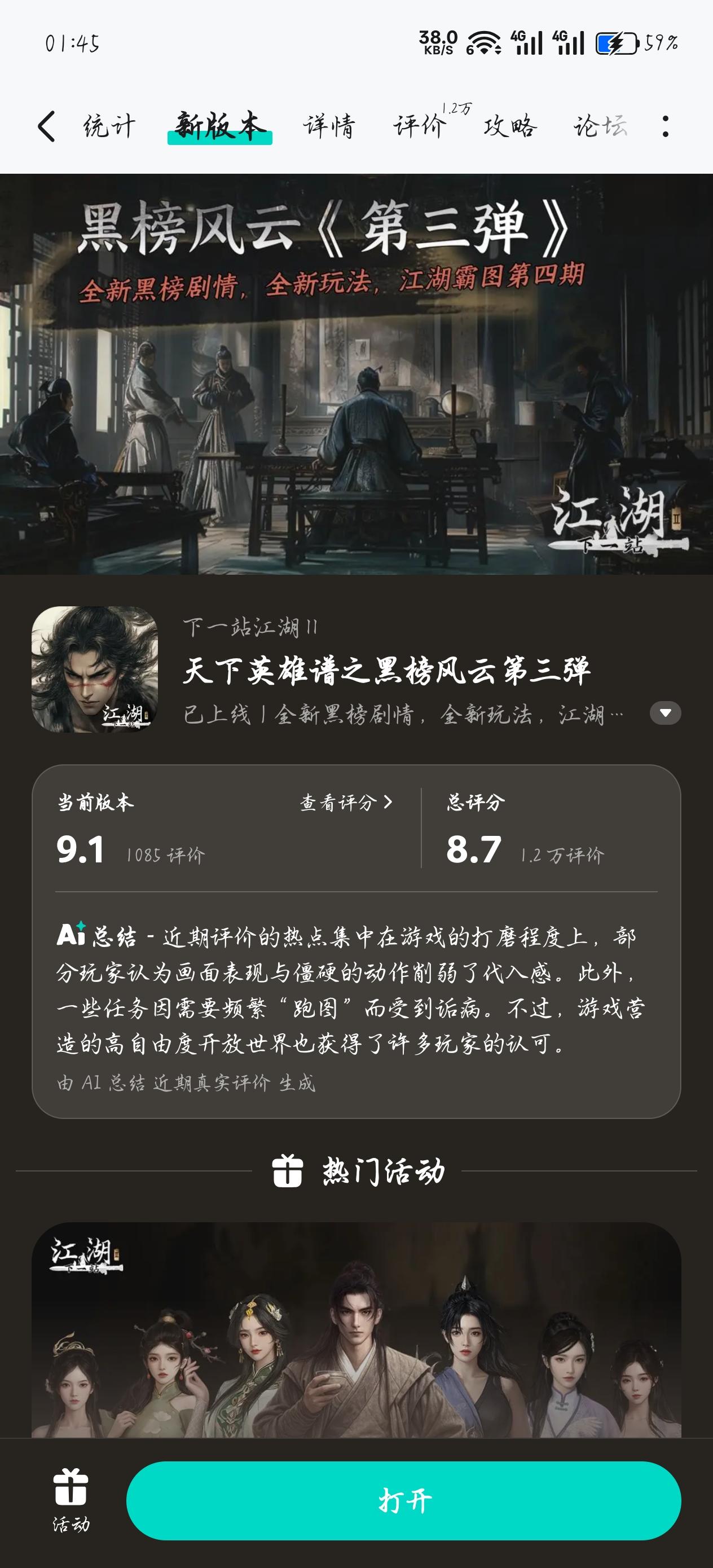 首先真的很渴望很渴望这种单机版的手游能出现了,我也玩了大侠立志传,但是大侠是走格子的,个人不太喜欢。这种自由度高的江湖类单机游戏我期待很久了,点进去的建模也很nice。衷心祝愿下一站江湖越来越好,后续也开发更多的此类游戏(例如修仙之类)