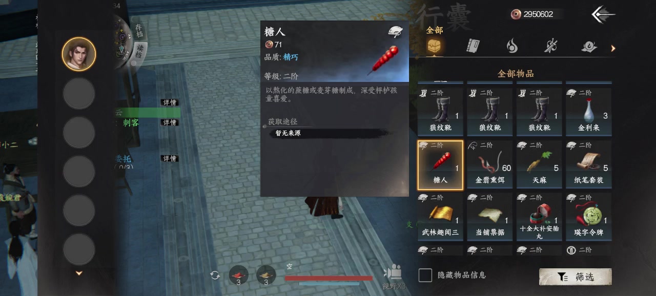 开局去村长那里偷他的钥匙,开启他家大树下宝箱,卖掉这些破烂拿到两三万铜板,去村子右上方马夫传送到坪城,找到城中心二楼的庄客开赌梭哈,赢了存档,输了读档。(单局赢钱不要超过8位数)手里有了几千万就可以开始浪了。 先传送去双修府青楼,跟左边NPC对话她会让你帮忙照看青楼,右边NPC交互选择青楼经营,用铜板换出200个或以上牌子(350左右能买空),主要是换个马铃。 有了马铃就可以在背包里找到随时传送了