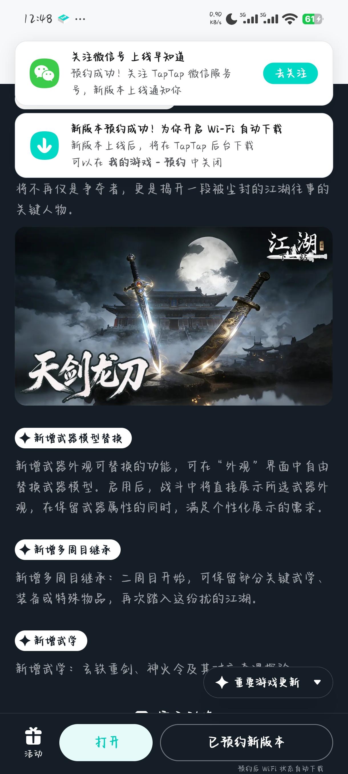 《下一站江湖Ⅱ》第十四部大型免费玩法资料片“黑榜风云”第三弹暨移动端第34更、PC端152更公告各位大侠好, 《下一站江湖Ⅱ》第十四部大型免费玩法资料片“黑榜风云”第三弹移动端已于12月24日19:10发布,PC端已于12月26日20:25发布。大侠们小退更新即可。 “黑榜风云”第三弹重点内容资料片特色内容1、江湖霸图(第四期),沉浸式门派体验1) 沉浸式优化:掌门晋升大典!玩家完成不同