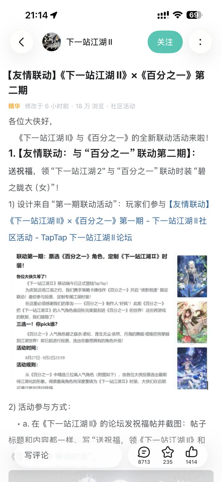 送祝福领下一站江湖Ⅱ和百分之一联动时装
