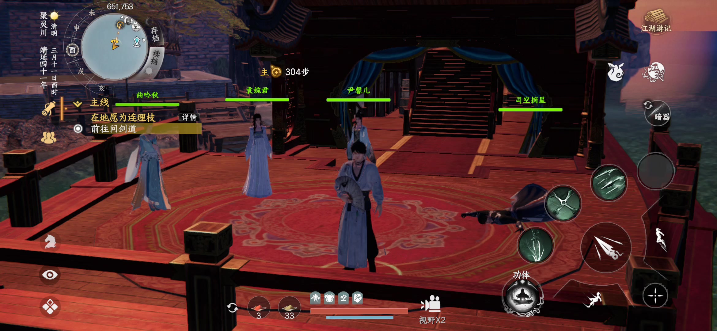 狂用轻功赶路呢,突然掉水里了,游了半天才发现情况不对,回个档就恢复了,这个真江湖档也保存下来了哈哈哈#下一站江湖Ⅱ