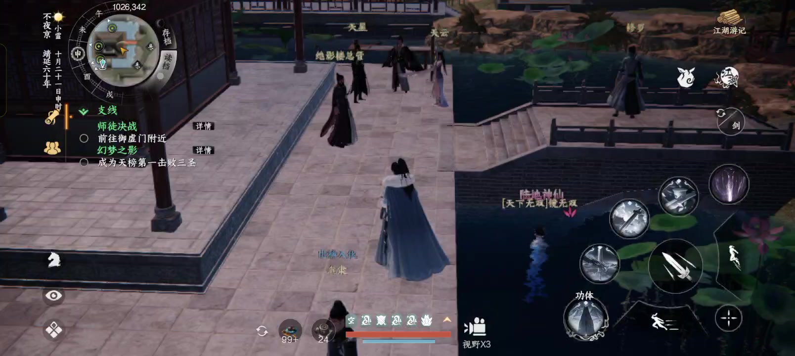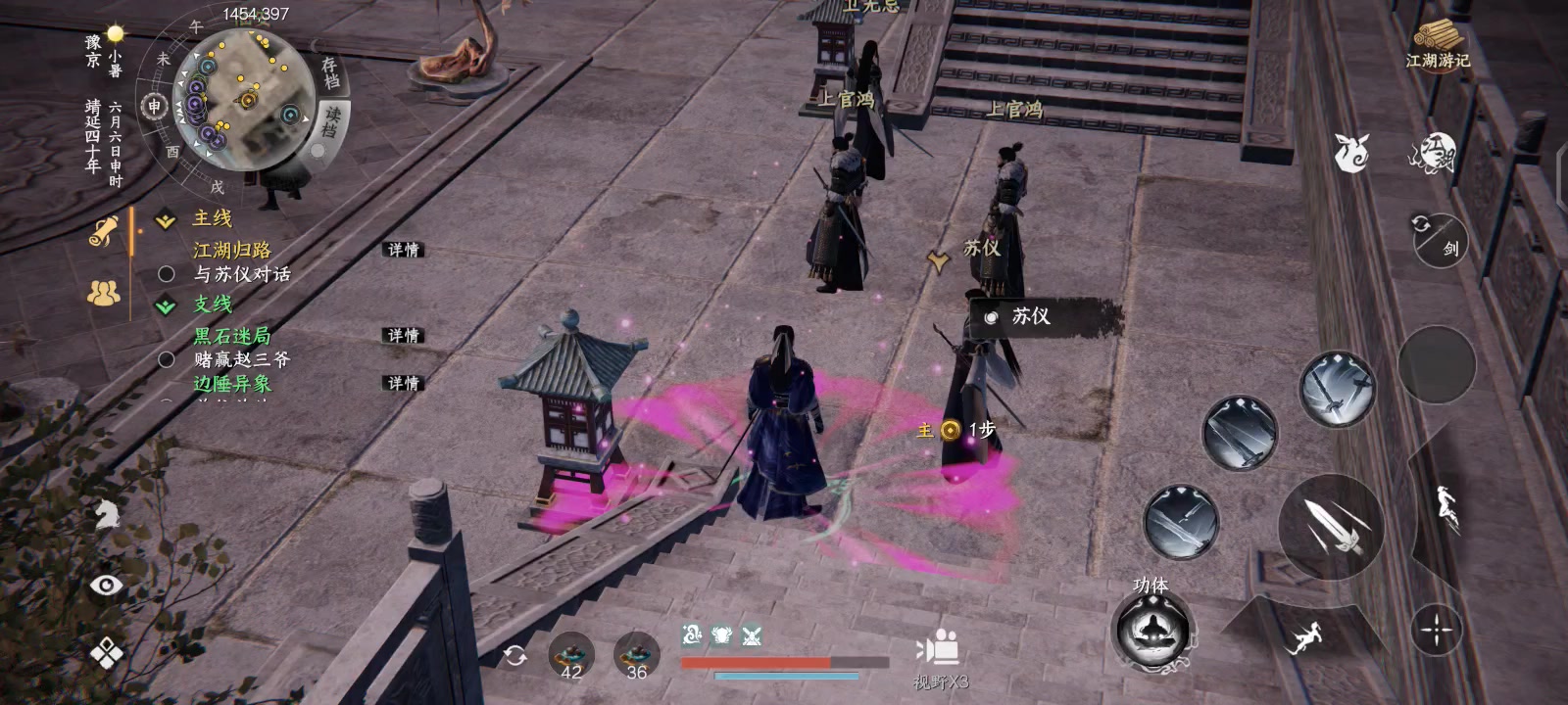 试剑天下群豪,已至无招胜有招之境,故此不用技能 …… 其实是用技能有点打不过,技能无法持续快速造成伤害,及时回血 切磋能选择地点就好了,庭院里竹影斑驳人来人往甚是喧嚣。出个邀战功能,玩家在一个地点用飞鸽发起邀战,NPC来到玩家发送飞鸽时的地点(准确到x,y,z)