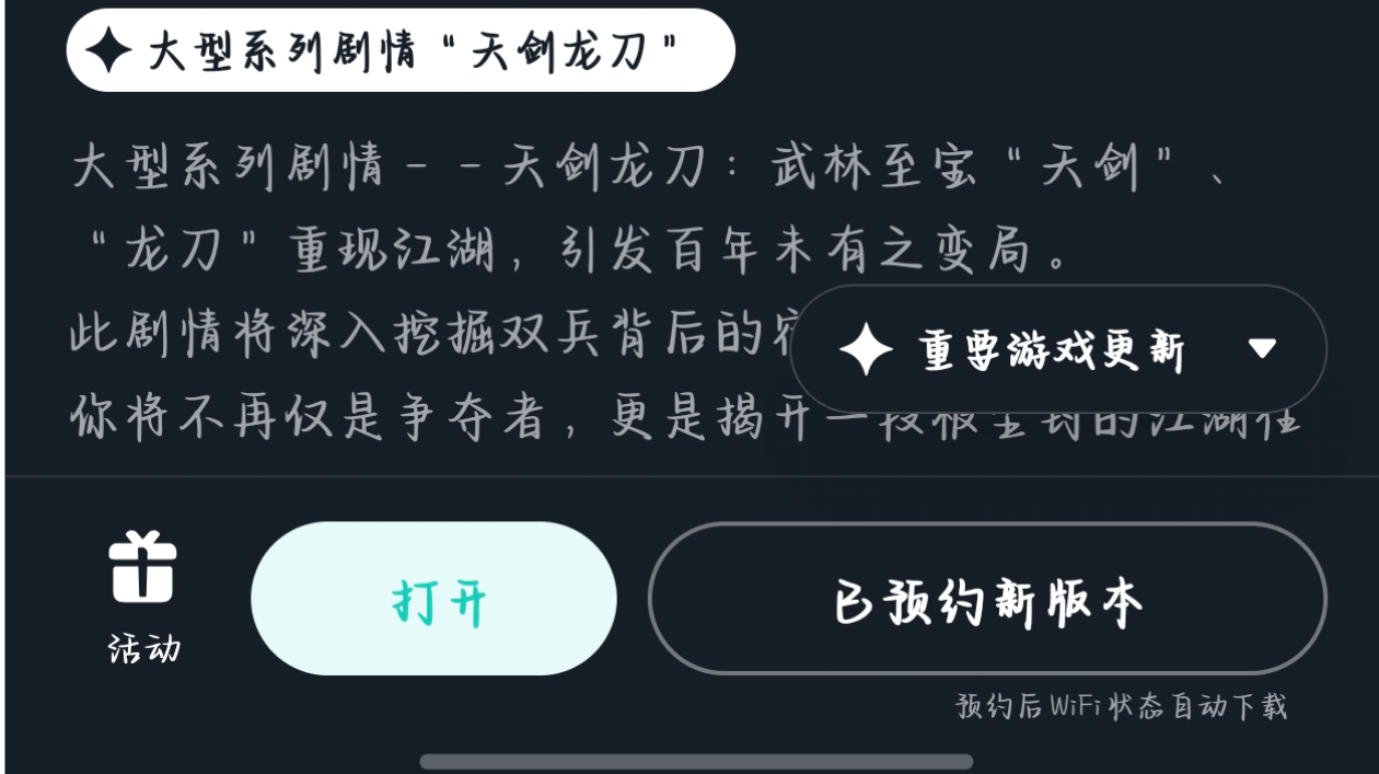 《江湖Ⅱ》第十五部免费玩法资料片“天剑龙刀”版本延至1月22日