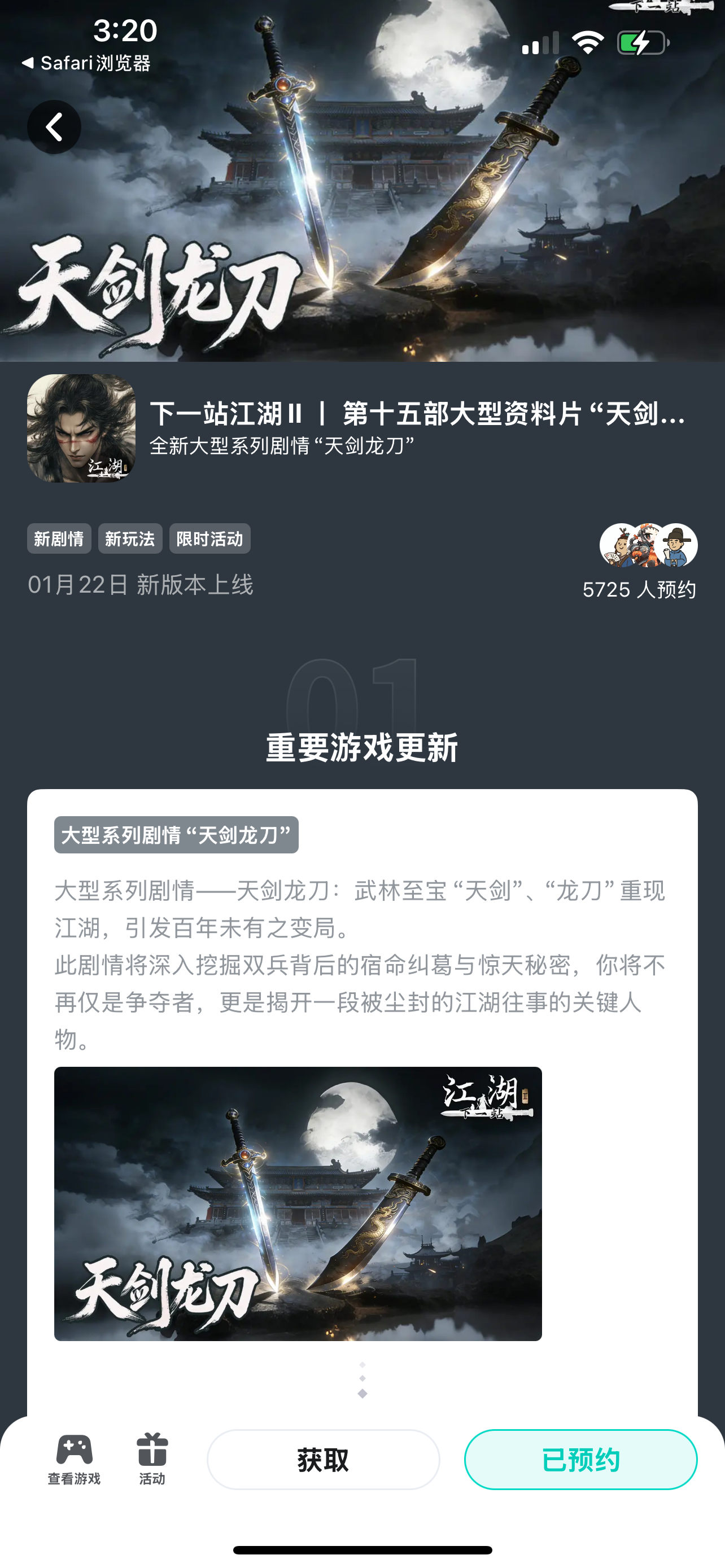 《江湖Ⅱ》第十五部免费玩法资料片“天剑龙刀”版本延至1月22日
