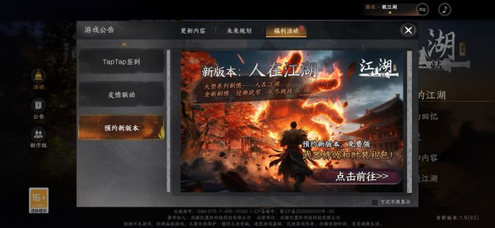 参与人在江湖预约活动免费获得武器特效和外观礼包