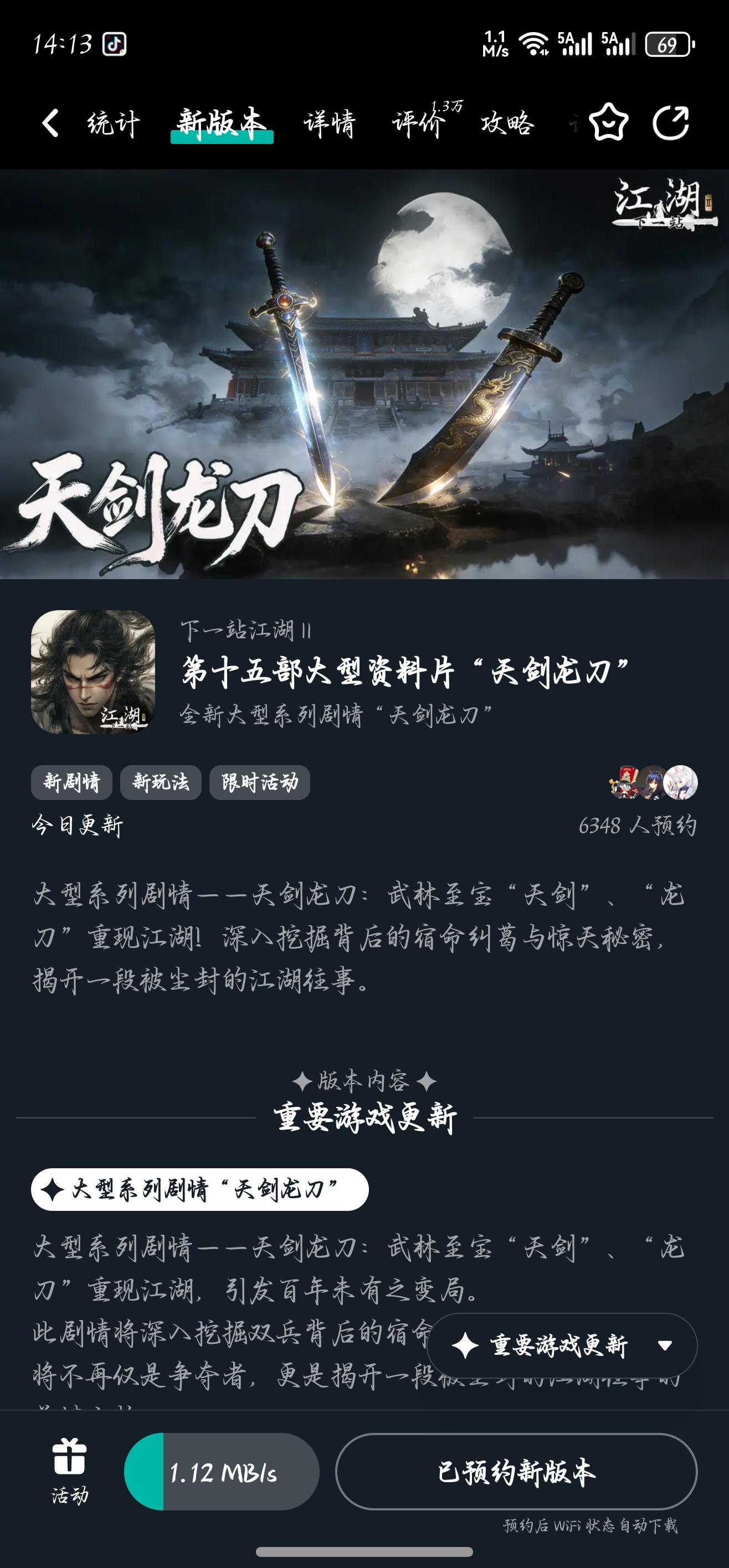 各位大侠好, 先跟大家说声真的抱歉! 在最近的一次版本测试过程中,临时排查出几个影响体验的问题,我们正在抓紧修复和测试。我们琢磨再三,将《下一站江湖Ⅱ》第十五部大型免费玩法资料片“天剑龙刀”延迟至1月22日发布。 我们汲取之前更新老出问题的教训,在每一个环节都做好详尽的测试,力求为大家带来更为流畅、稳定的版本,还望大侠们能够理解与支持。 《下一站江湖Ⅱ》第十五部大型免费玩法资料片“天剑龙刀