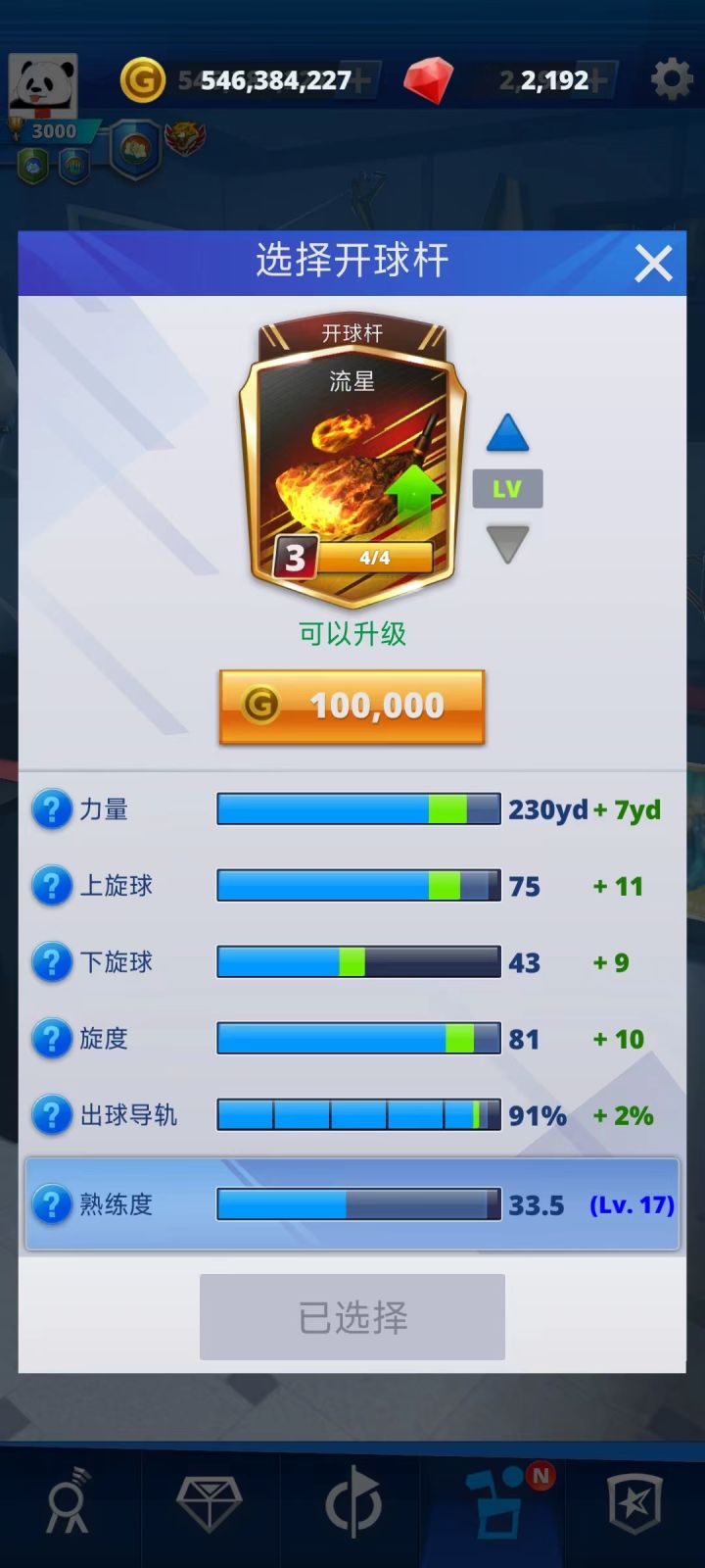 普通球袋是有很低概率出传说,刚开始玩的时候就问过公会前辈,人家表示普通球袋没开出过传说杆,后来我也就没放心上,谁知道今天欧气爆棚,金色球袋开出了传说还是开球杆,开球杆终于4级了!