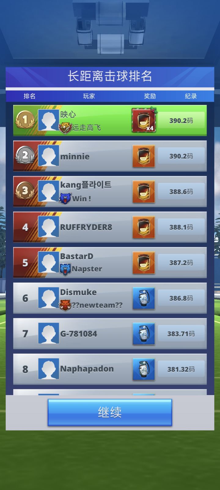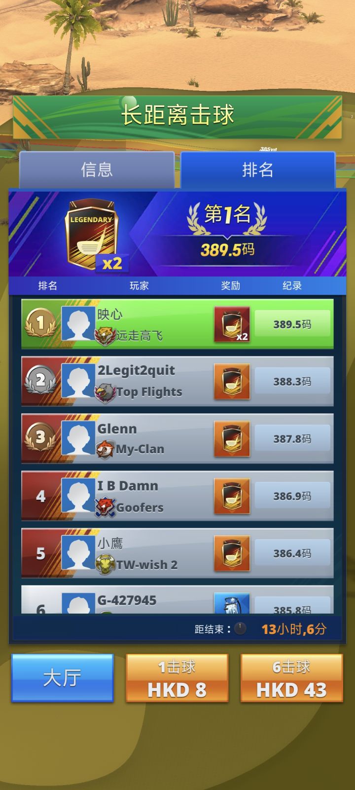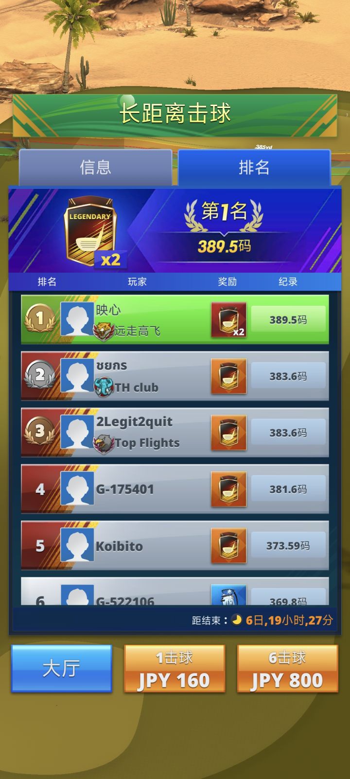 第一次长距离第一名奖励两根传说杆传说开球杆正好满级