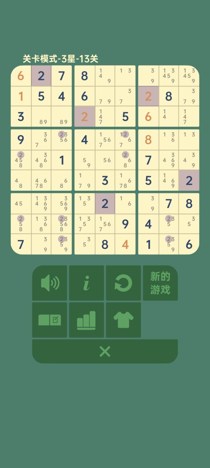 这个游戏其实已经和传统数独有一定区别了,但是效率更高。在我看来更类似“找区别”,直到所有逻辑通顺,如果实在确定不了的话,试一下会更快。通关的大致顺序是:(我把一个9宫格叫一区,但是横向一条或者纵向一条也是成立的)1.先找每个小区里单独的,和相对好找一些的2.开始逐步排除。第一种情况是如果9个格子里只有2-3个同一行,或者同一列的可能性,那么这整个一行一列都不会再有。下图是一个变式,因为第
