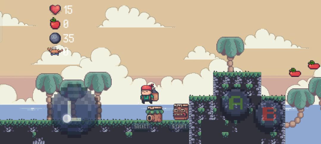 有一些玩家反映游戏难度太高,第一关都过不去,其实第一关不难,只要注意棕榈树随机掉落的果实炸弹和跳跃高度,就挺简单的. 按住跳跃键角色会跳得更高.