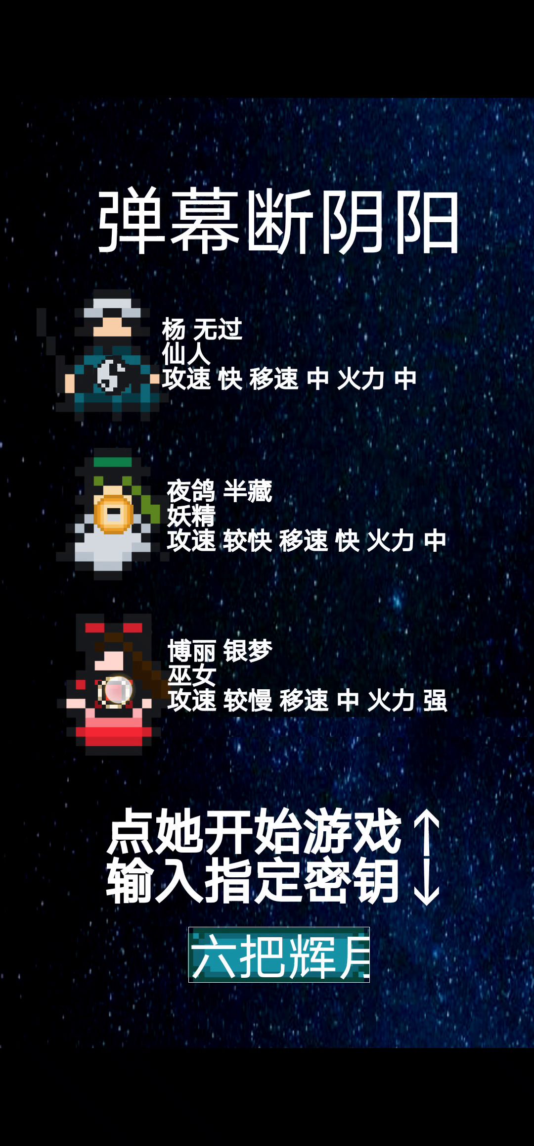 这游戏还有三面,秘钥输「三面」点第一个自机就好啦,不过这游戏似乎停止更新了,期待作者下一个作品吧😘