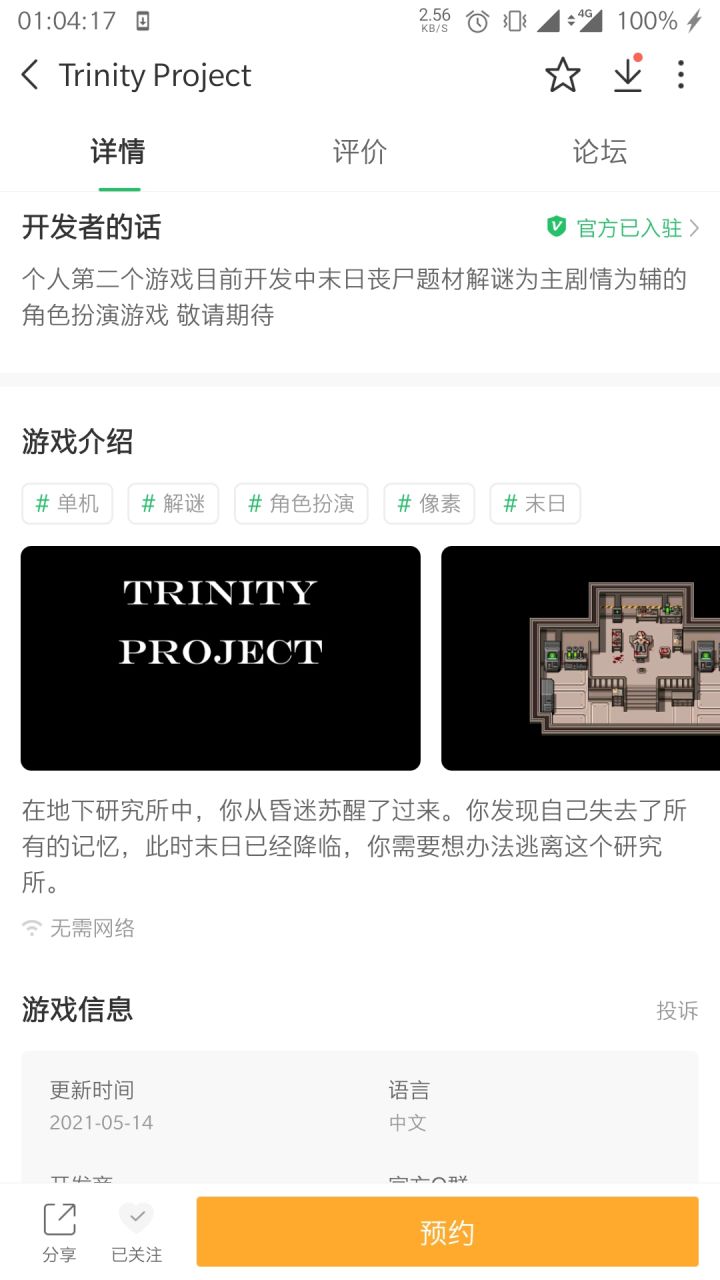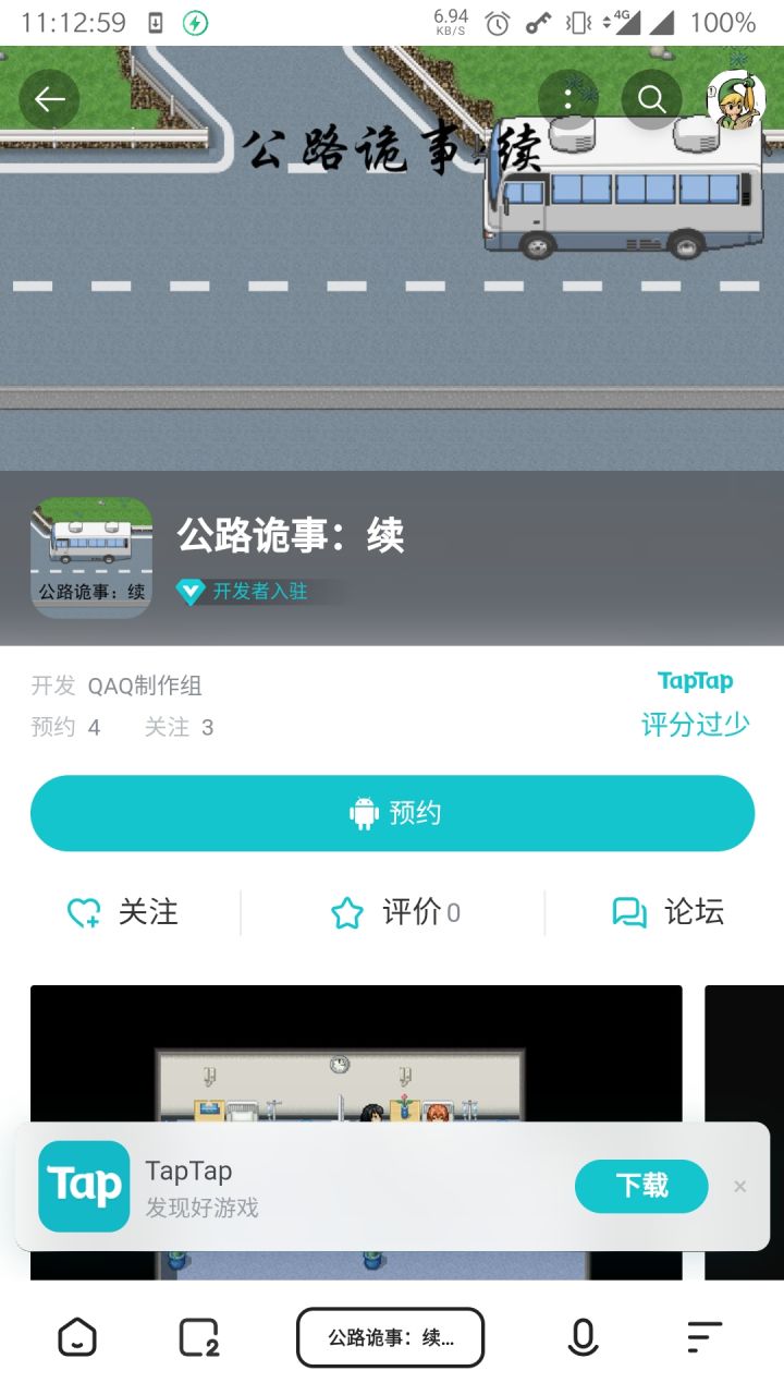 审核过了 不过我网页以及app端都还搜不到 公路诡事:续 自己开发者转到游戏页面 一看就4预约 3关注了 还搜不到的游戏就有 看来是自带的😂
