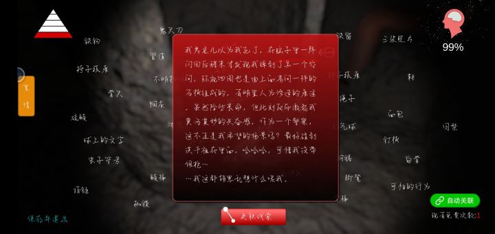 温馨提示:没有提示,提示多了总有玩家说我剧透……——————目录:一、线索图鉴二、线索关联公式三、重要物品触发及位置————————一、线索图鉴——————二、关联公式①囚禁:球上的文字,水,红气球,铁窗②上吊:脚印,椅子,挂绳③可怕的行为:硫酸,钉板,绳子,枷锁,钢锯,骨桶,断腿,酸桶,冰柜,铁笼,骨头,鞋,鬼头刀,不明物体,铁钩,白骨④图纸:虫子符号,驯鹿天牛,天蛾