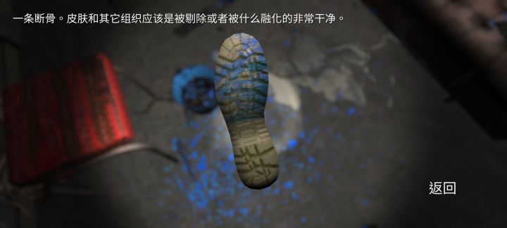 一层铁钩:房顶上钉着两个铁钩应该是某种刑的一部分。椅子抓痕:(有靠背的红色椅子侧面)(旧版本有bug,若不能触发请下载新版本)用刑的椅子上有一处抓痕。头骨:一个头骨,在铁笼外面。硫酸:一大桶硫酸,晃了晃,里面还剩余不少。叔叔救我:(没气的足球背面)一个没气的皮球,转过来,接触地面的部分有几个字:叔叔救我。虫子符号:一个奇怪的虫子符号,像是一个标本,同时上面有铅笔画的痕迹。项链:(冰柜