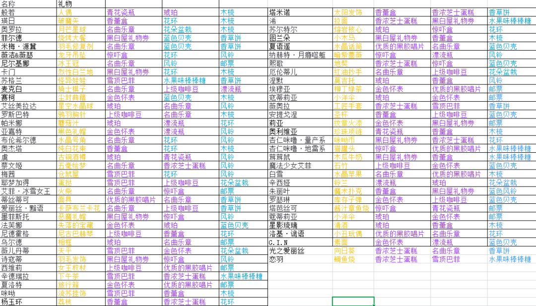 各职业乐姬梯度榜&小凉礼物表&光爱简评