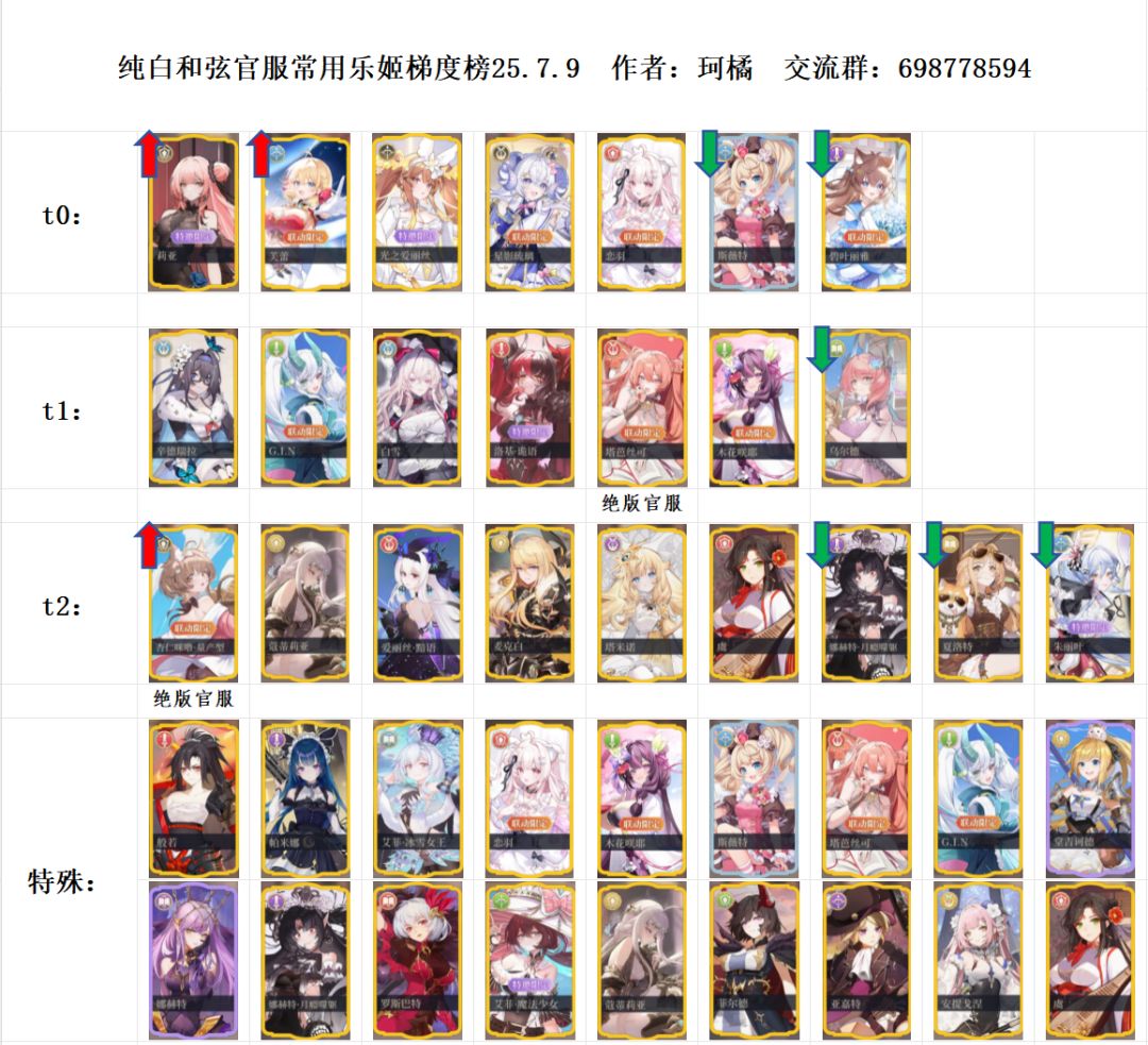 已经有7月最新的梯度榜了,请移步~ 纯白和弦玩法交流群698778594,官服玩家小群1011605930