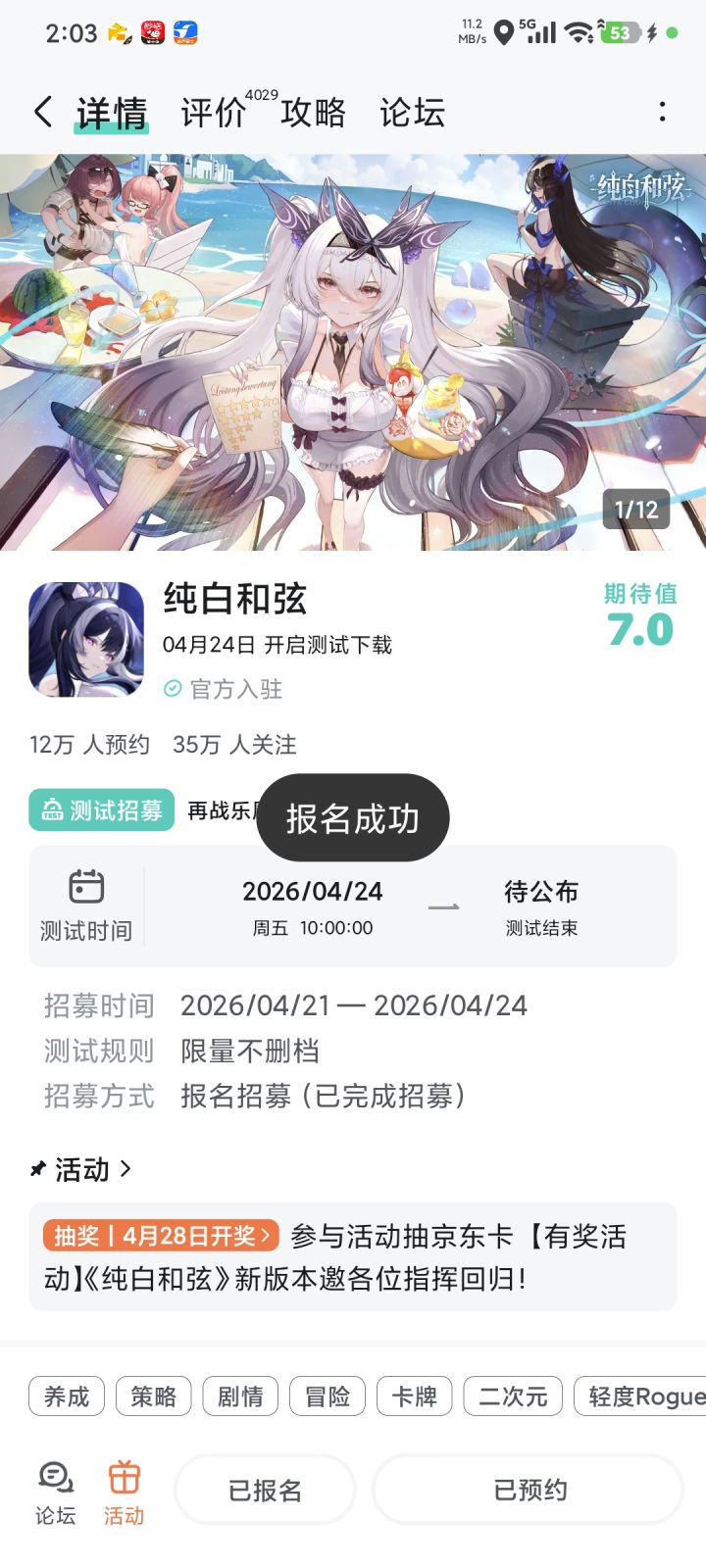《纯白和弦》新版本上线,全新福利回馈玩家!五大职业乐姬,由指挥随心搭配多变的阵容,在即时制的战斗中激发乐姬潜藏的力量。共同抵御「乐魇」侵袭。指挥,就等你了,点击即可预约>>>【参与方式】1.关注《纯白和弦》且发新帖晒截图2.在本帖下方评论区分享发帖链接即可【活动时间】即日起~2026年4月28日 23:59【活动奖励】京东卡,共8份【注意事项】1.仅有符合活动要求的评论会被视为