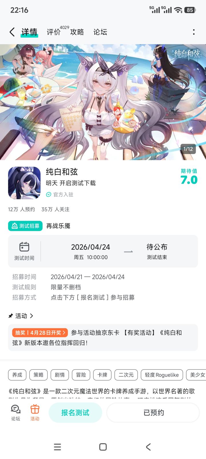 《纯白和弦》新版本上线,全新福利回馈玩家!五大职业乐姬,由指挥随心搭配多变的阵容,在即时制的战斗中激发乐姬潜藏的力量。共同抵御「乐魇」侵袭。指挥,就等你了,点击即可预约>>>【参与方式】1.关注《纯白和弦》且发新帖晒截图2.在本帖下方评论区分享发帖链接即可【活动时间】即日起~2026年4月28日 23:59【活动奖励】京东卡,共8份【注意事项】1.仅有符合活动要求的评论会被视为