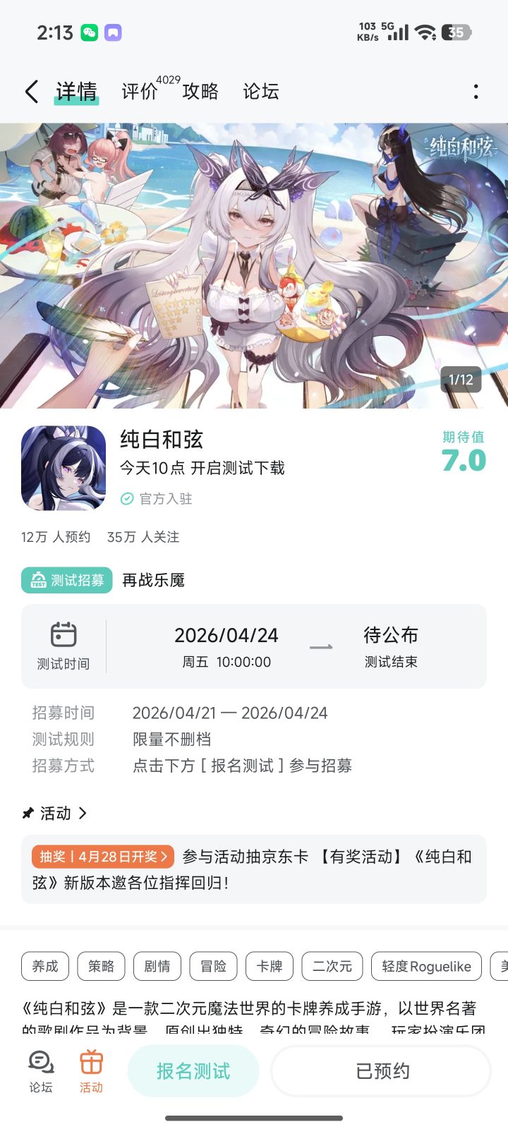 《纯白和弦》新版本上线,全新福利回馈玩家!五大职业乐姬,由指挥随心搭配多变的阵容,在即时制的战斗中激发乐姬潜藏的力量。共同抵御「乐魇」侵袭。指挥,就等你了,点击即可预约>>>【参与方式】1.关注《纯白和弦》且发新帖晒截图2.在本帖下方评论区分享发帖链接即可【活动时间】即日起~2026年4月28日 23:59【活动奖励】京东卡,共8份【注意事项】1.仅有符合活动要求的评论会被视为