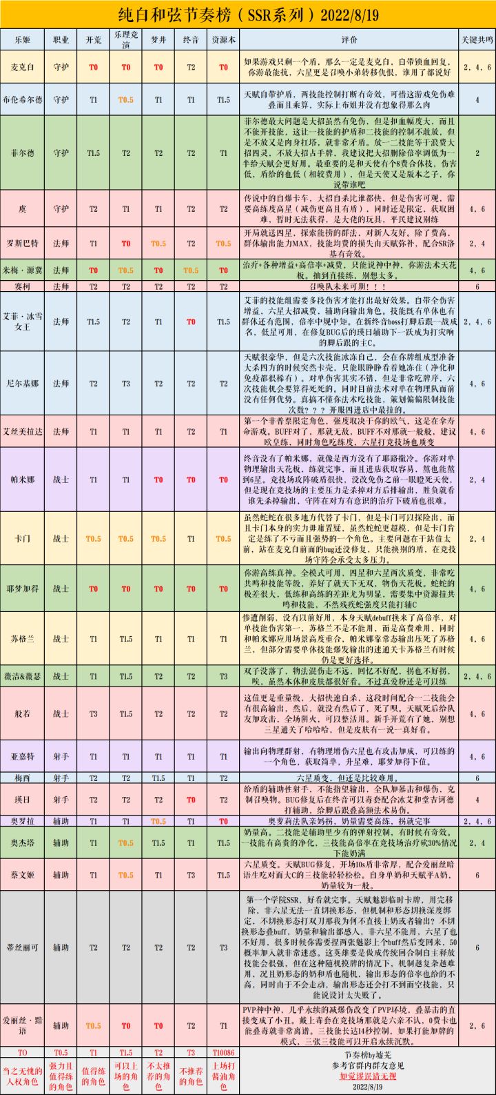 和上版相比,因部分乐姬BUG得到修复,评价有所提高,同时移除T10086。节奏榜仅供参考,各位图一乐就好。