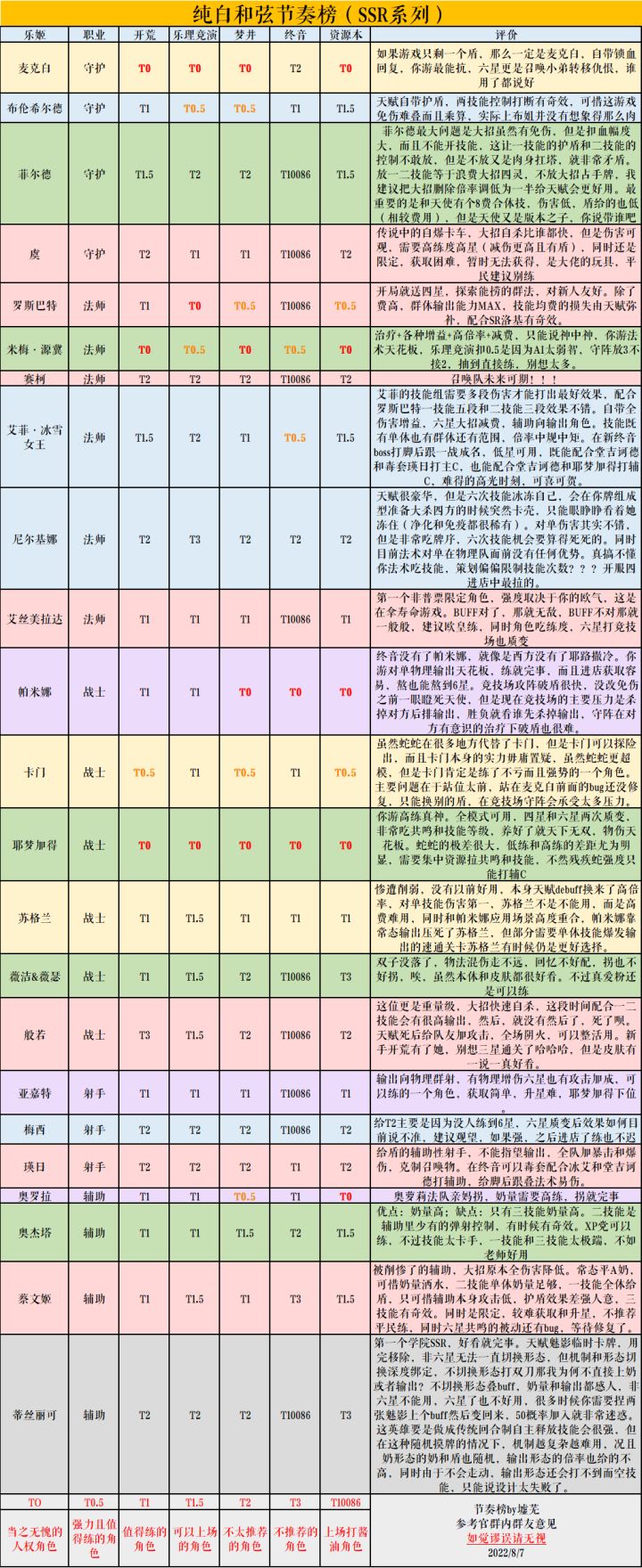纯白和弦节奏榜(SSR系列)2022/8/19
