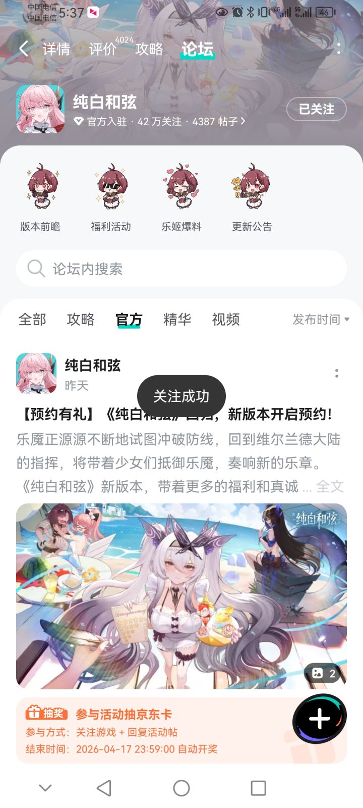 乐魇正源源不断地试图冲破防线,回到维尔兰德大陆的指挥,将带着少女们抵御乐魇,奏响新的乐章。《纯白和弦》新版本,带着更多的福利和真诚回归。指挥,和我一起回到维尔兰德大陆【参与方式】1.关注《纯白和弦》且发新帖晒截图2.在本帖下方评论区分享发帖链接即可【活动时间】即日起~2026年4月17日 23:59【活动奖励】京东卡,共5份【注意事项】1.仅有符合活动要求的评论会被视为有效参