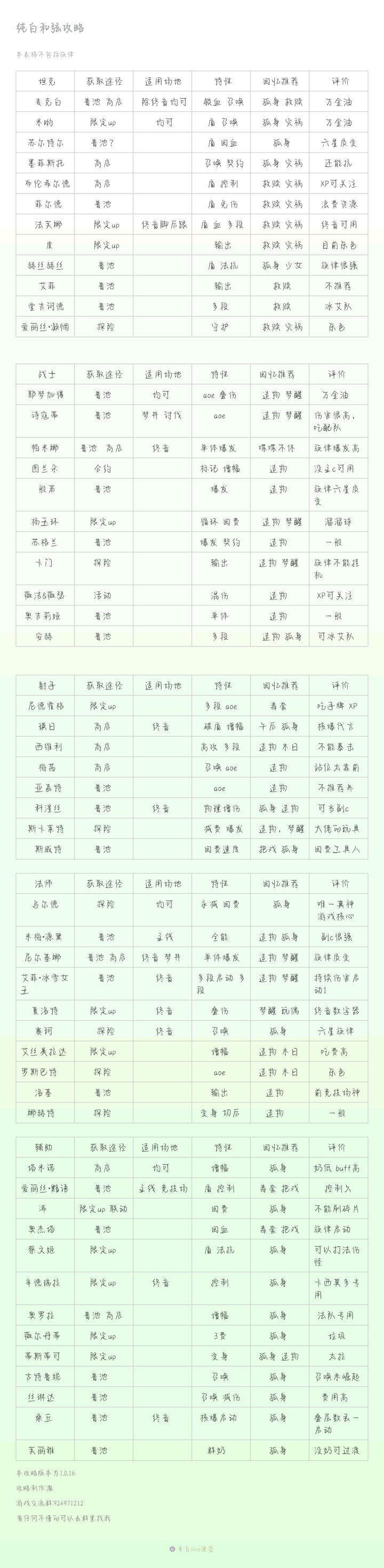 此贴对现ssr角色强度做排行(sr,r卡不计),主要参考为使用体验,对竞技场、副本、就业情况做综合评价。