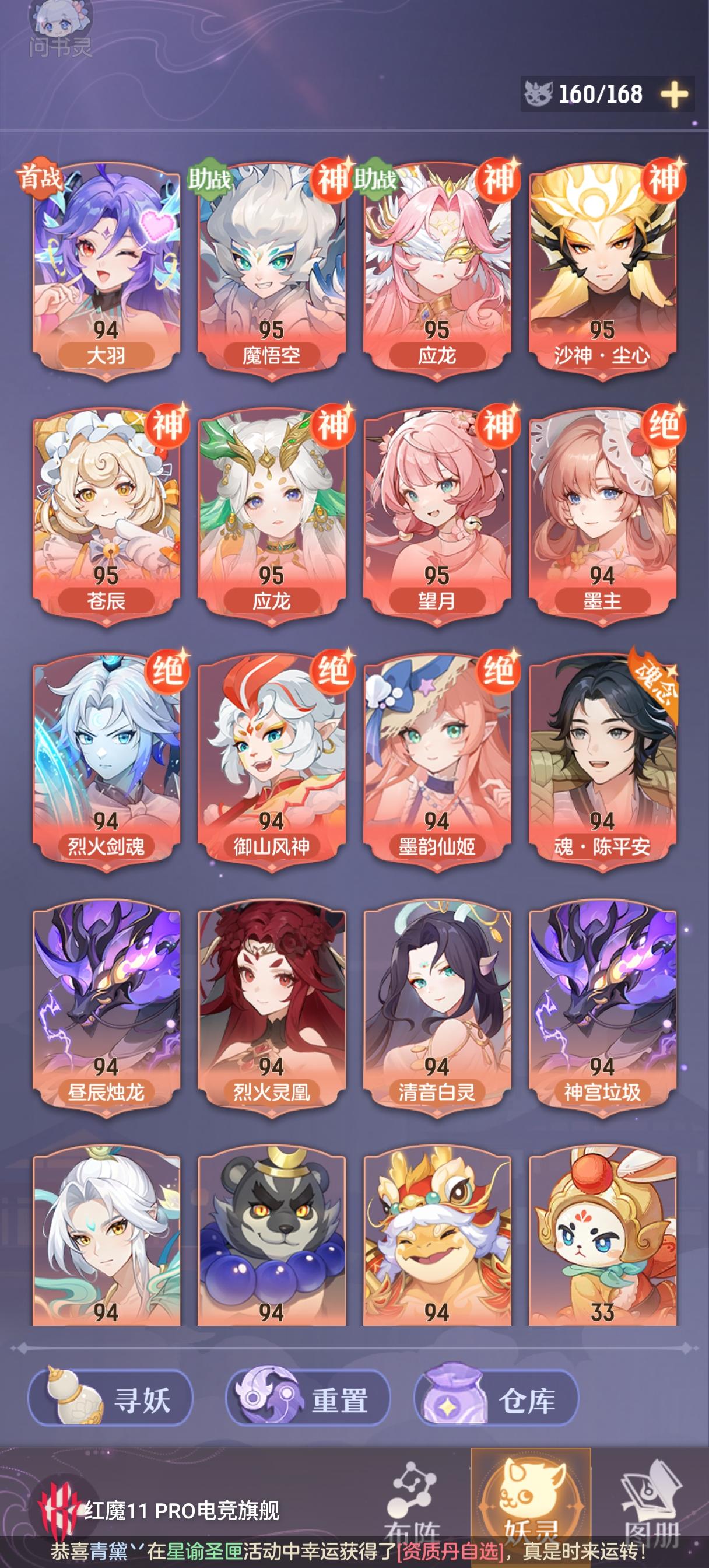 新手新区玩儿了一周,双月卡加杂七杂八花了300左右,进度都跟不上。爬塔爬不动,灵阶跟不上,历妖打不过。铜币不够,跑商都费劲。元宝不够,灵玉只有五六千,神兽遥遥无期。看了一下聚仙阁,也没仔细研究,700直接买了一个89的。铜币四亿多。其他资源也不少。19个成品宠物,都是20000左右潜能,7技能槽,满技能的。现在玩儿了几天了,就是做做日常,角色基本会用了,就是这些宠物哪个适合干啥还摸不清楚。还