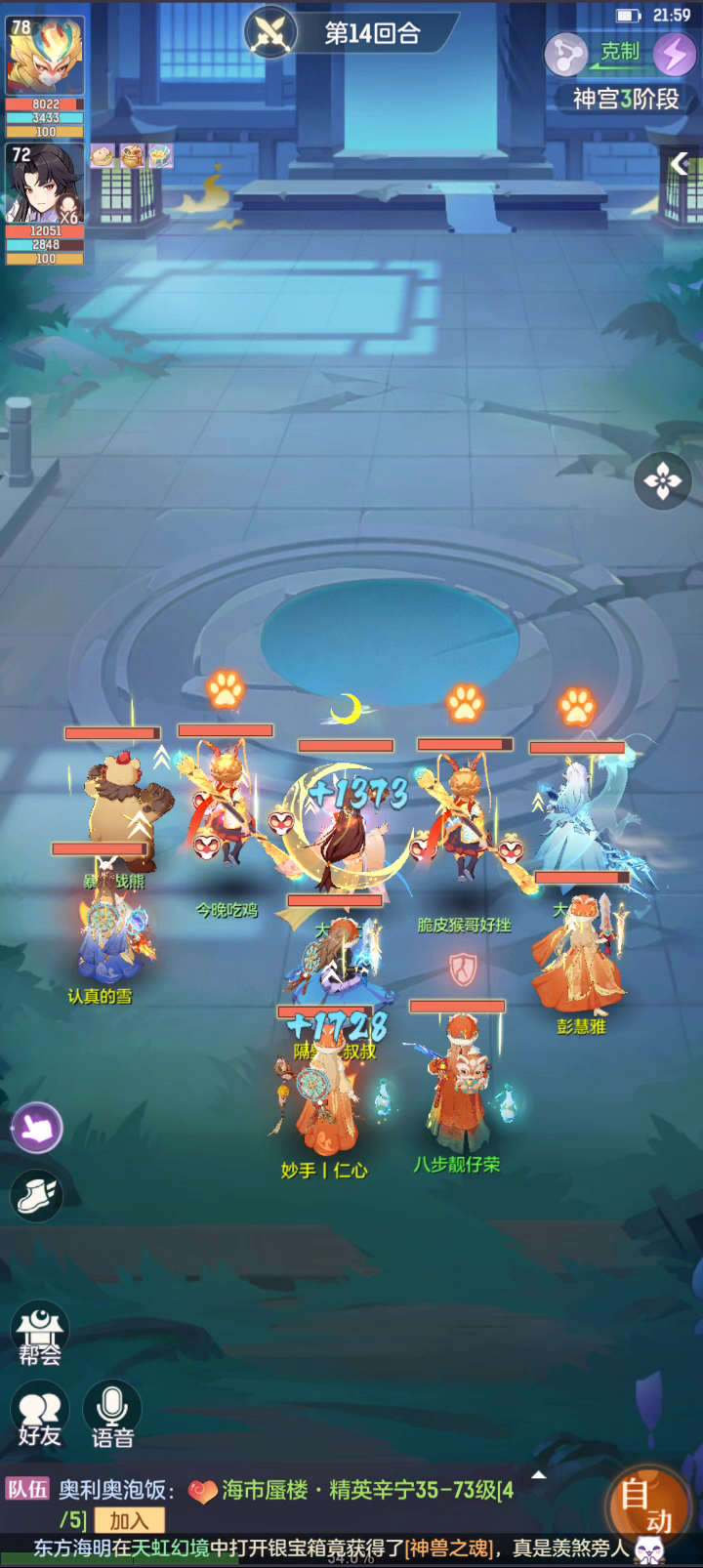 ID:汽水不要钱 事情是这样的,打天5,随机进的队,青丘我满修和宝石。一二回合都封中了,第三回合水了,直接咒我死。 事后我在帮里吐槽,帮里一个氪佬说,这个人之前和氪佬组固定队,氪佬当时没立马搞神兽,这人33当天之间退队另外组。 我现实中的媳妇(一起在玩这个游戏)知道了,上来找他,他就装傻了。有趣。