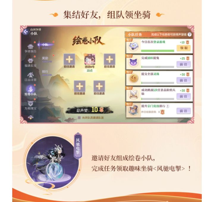 万人争锋,剑指长安十万人争锋服可谓是非常热闹,要人有人,要福利有福利,全新妖灵帝炎和墨主登场:帝炎通体火焰,非常霸气,给人的感觉伤害就非常高(一刀999);墨主妖如其名,水墨风格,非常好看,长安的美工简直无敌!当然还有全新坐骑定乾坤,一把非常有分量的大宝剑,让你体验小时候最喜欢的御剑飞行,只需数秒就可以到达自己想去的地方;除此当然还有免费坐骑,只需和好友组队就可以领到,风驰电掣,体验风的感觉!