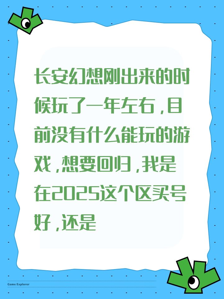 长安幻想刚出来的时候玩了一年左右,目前没有什么能玩的游戏,想要回归,我是在2025这个区买号好,还是在2026这个区买号好?求大佬们告知。