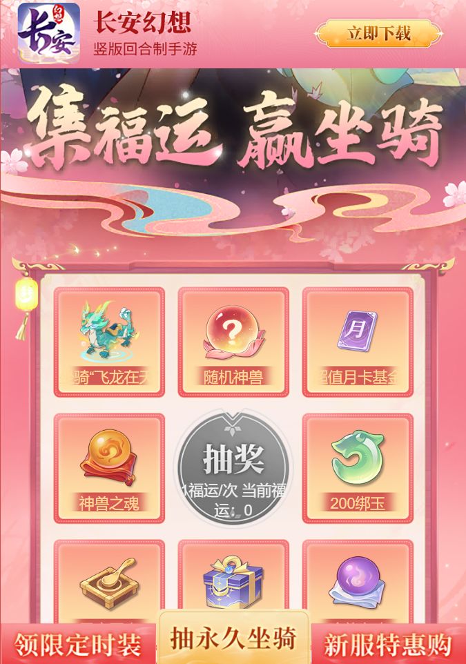 盛世长安,乘风同行!长安幻想「盛世华年」版本已经上线啦!齐贺华诞,九州同狂欢🎉 小书灵为御灵师准备了周边抽奖活动,还有新一期的签到活动,福利满满,假期轻松游长安!即日起至10月13日,进入详情页立领TapTap专属礼包码,人人有份!累计签到满7天可得【四宝】、【高级妖灵秘诀】以及更多游戏内福利!参与集卡还有机会获得【头像券(绑)】或【云阙长乐·套(7天)】,在本帖互动还能免费抽取【精美实体周边