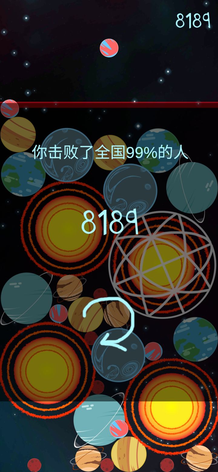 明明没有碰到红线也结束游戏了,那个小红球球在星球里面了