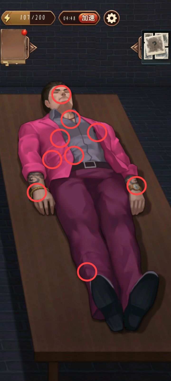第一章 赵员外身上线索 线索位置(线索分析5体力): 1.【赵员外的头发】 2.【赵员外的脸部】 3.【赵员外的衣服】 4.【赵员外的肚子】 5.【赵员外的双手】 6.【赵员外的玉佩】 剧情→望字诀断诊 推理 (推理验证10体力) 1.望字诀断诊 望字诀断诊→【赵员外的双手】、【赵员外的脸部】、【赵员外的头发】、【赵员外的肚子】、【赵员外的玉佩】、【赵员外的衣服】 剧情线索 1.【身体健康】 推论