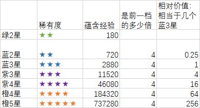 开服玩的朋友们大部分都通关了,不少人开始刷起了装备,除了闷头刷,不少人应该也会好奇,刷哪个图效率更高,各刷1小时能刷出多少装备,对我手头的装备有多大的提升,刷图产出跟日常产出以及开超级宝箱的产出相比价值如何,简单估算了一下 一、装备经验 先简单科普下装备经验。如图2所示,在装备升阶界面可以看到,紫3星通用材料提供11520点经验,蓝3星=2880点经验等等。对于同名装备,重复获取时也会增加相同的经