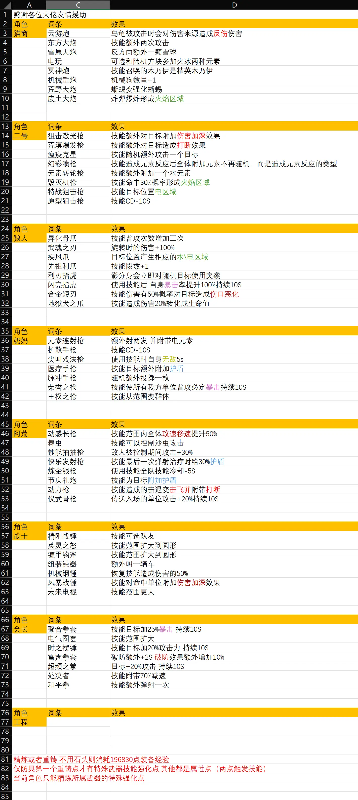 精炼属性图鉴!!!