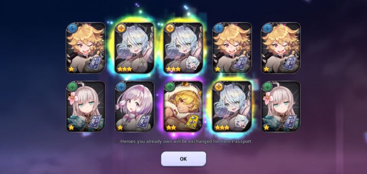升星好麻烦 抽奖暴率还行 就是重复的英雄只给卡片 3重复3星50卡片 换20碎片要30卡 30碎片要60卡 50卡等于30碎片 后面还会涨价 难搞啊 暴率真的不错 3个3星全重复一次 还抽到个限定钻石抽光了 一直没搞明白暗剑怎么快速叠狂暴 算个狂战吧 还算肉 光剑开局必搞 有立即回合和高单体伤害 火剑伤害也爆炸 奶养这个 后面送150碎片 可以到3星多