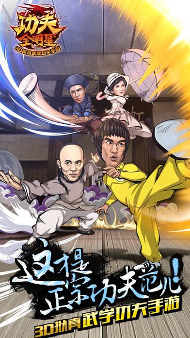《功夫全明星》是一款以中华功夫为题材的3D拟真武学功夫手游,游戏同时拥有《死亡游戏》与《黄飞鸿之男儿当自强》两部电影的正版授权。玩家在游戏中可以使用黄飞鸿、霍元甲、叶问以及李小龙在影片中饰演的比利等数十位著名功夫明星,配合截拳道、迷踪拳、咏春拳等传统东方武学与敌人进行战斗。游戏采用真实物理碰撞反应机制将战斗过程展现的更加细腻,力求打造与众不同的格斗体验!
