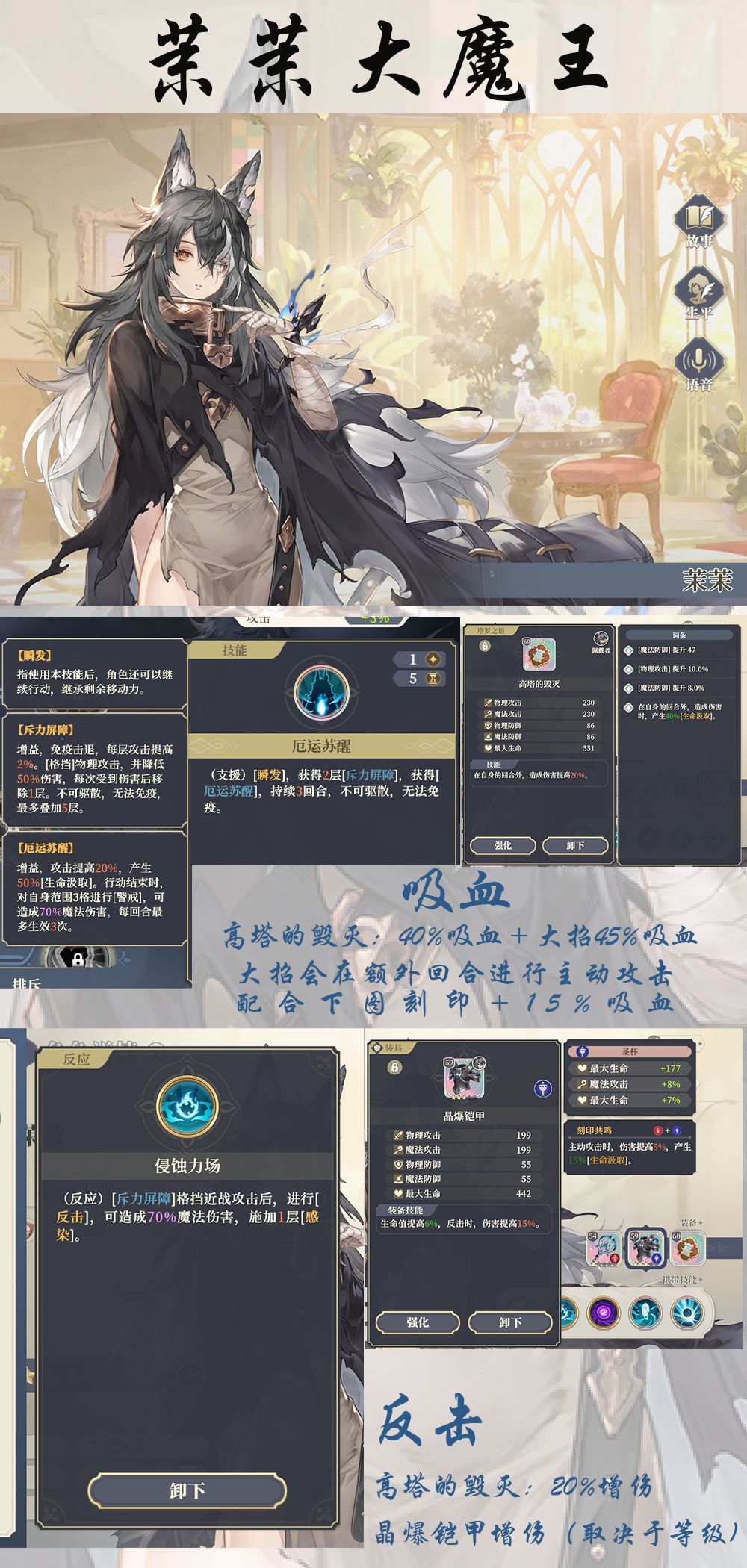 高塔的毁灭自生回合外增伤加吸血 茉茉自生大招吸血回合外警戒以及刻印效果[表情_开心] 除了吸血就是挂被动 反击也很强[表情_吃瓜][表情_吃瓜][表情_吃瓜]#攻略#游戏推荐#游戏讨论