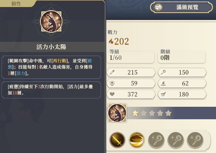 第一时间跑完片,早上睡醒起来码字。 作为三体人时代开拓者,小姐头可以说有着其特殊的意义。我个人其实是对小姐头设计表示不太行的,太过随意的再行动触发条件,稀有的增伤双暴个性(后面应该就不稀有了) 一、【属性值】 整体属性在突袭者中算比较不错的,没有特别需要说明的部分 基础速度值180,配合机动队的技能可以达到一个280速度拥有很高的出手权 二、【技能组】 个性技能会分为三个模块来说明 提升率:3、5
