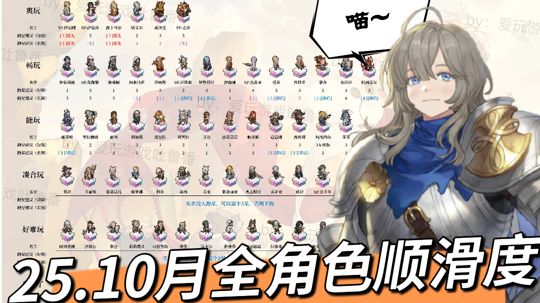 本内容有台服大大三毛毳整理~由于词条蛮久没更新了,莉莉薇儿、诺诺薇儿、伊奇、米格尔、内尔伽勒、伦伽勒、艾达等台服后续的单UP角色不在此表内。 原贴链接: rh850623.blogspot.com/2023/08/20230814.html