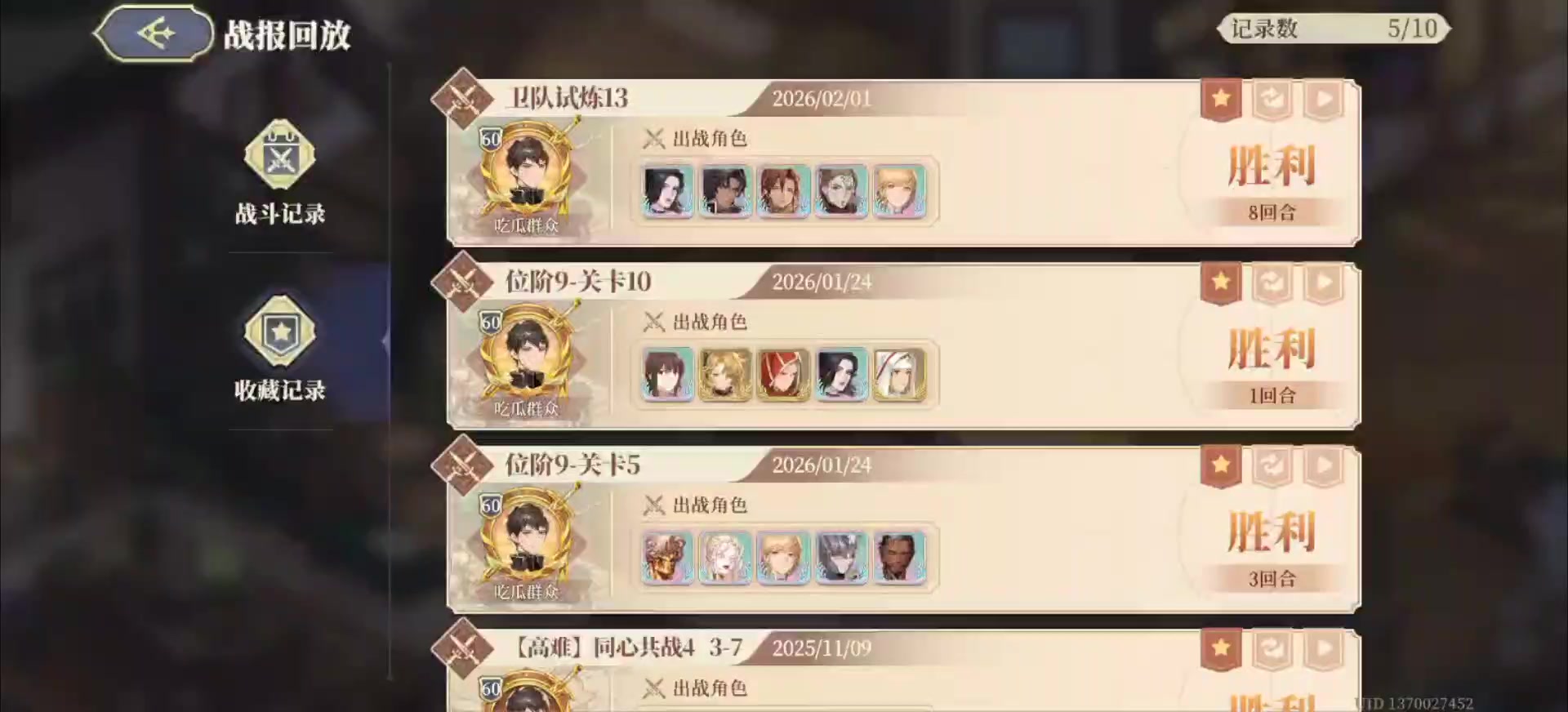 铃兰之剑征服之塔,10-3无伤版,5月6日。