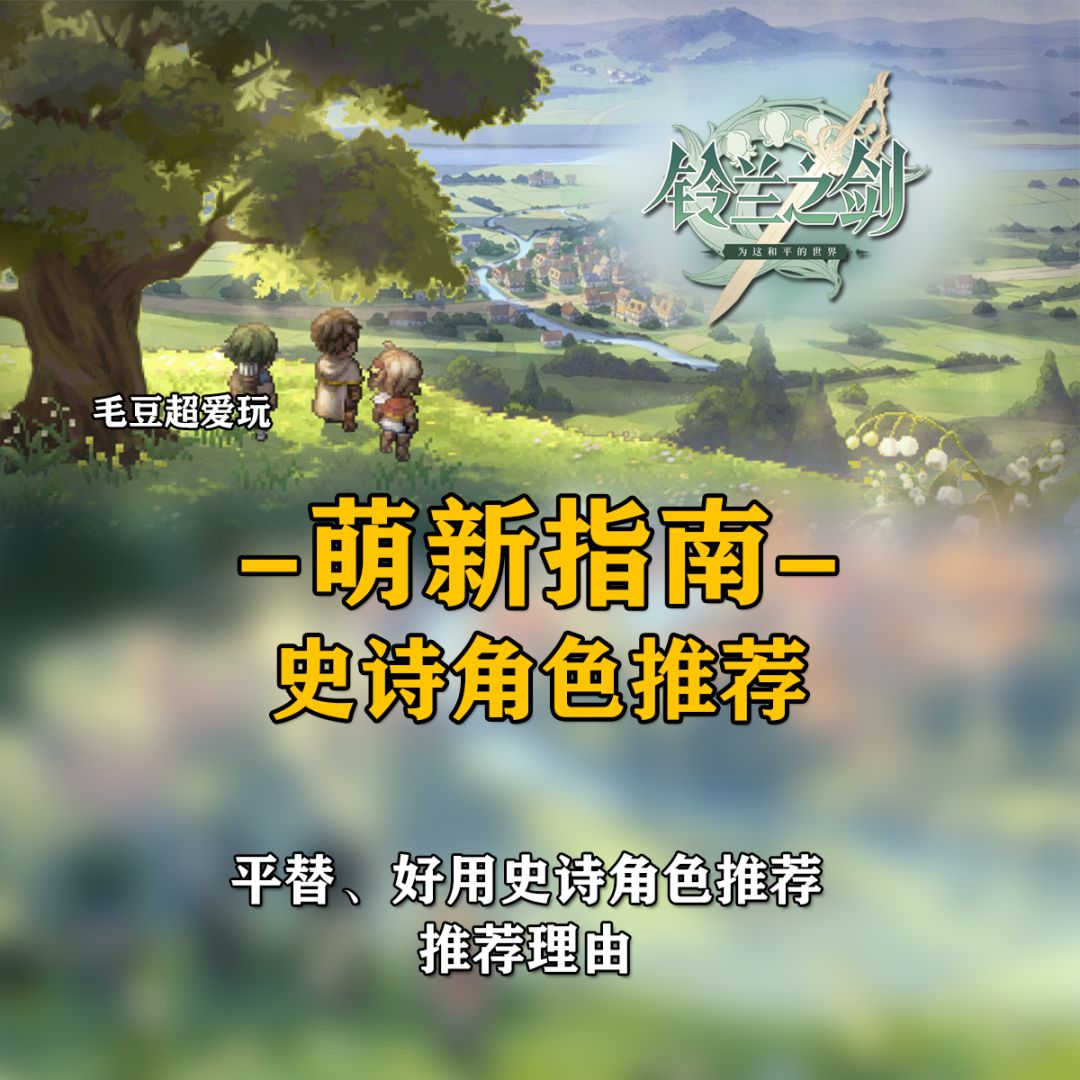这里是毛豆,本期为大家带来的是《铃兰之剑-为这和平的世界》萌新指南,本期包含5位个人认为非常好用的史诗角色推荐,话不多说速速开启本篇攻略吧! 前排提示:省流版看最后一图 1.王国之刃-红隼 2. 黎明侍女-黯心 3. 光辉弩手-神恩 4. 光辉侍女-天使 5. 佣兵-风暴神斧 毛豆唠叨时间: 切记35级之后不要乱养角色,越到后期资源越稀缺!优先紧着一队养。 以上就是本期的全部内容了,最