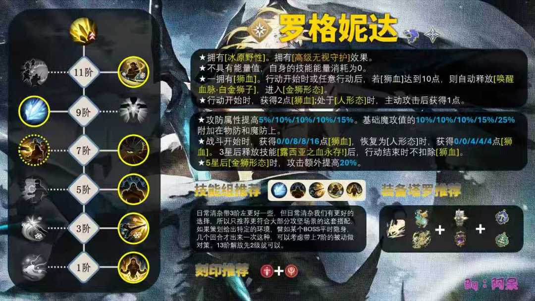 1.人设:绝对的主角之一,铃兰之剑看板娘. 2.强度:跟蒙面莎坐一桌,强度略低于她但带来了新机制,游戏性好。 3.使用方式:三阶交领悟之力,其它看你需求。 要点: 一.五星之前需要携带回能被动 二.推荐铭心辉晶(独眼修女的)专武二星以上,比她自己的大剑专武要好(这是重点!!!)。这个游戏百分之90以上的战斗在三回合之内结束,第一回合自己能爆发的角色可以节约你很多时间,项链能省一个战术位同时解决大麦