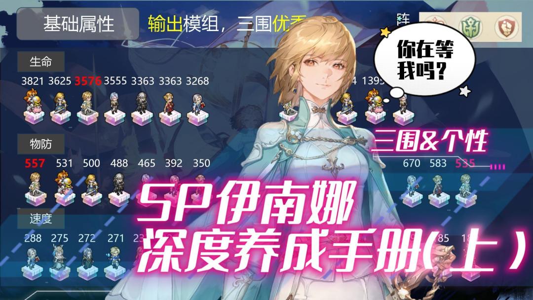 角色特点:伊南娜拥有战棋游戏最重要的技能【王女的祈愿】,让已行动队友再行动一次,同时增加攻击2,魔防2 并且自带一个王女亲卫的召唤物,可以拉怪,挡刀,卡位,多一个目标让BOSS标记,也可以分摊压力。 如何配队:万能搭配治疗,皆可上。 行动思路:主C一刀打完,再动加攻再来一刀。#铃兰之剑攻略征集
