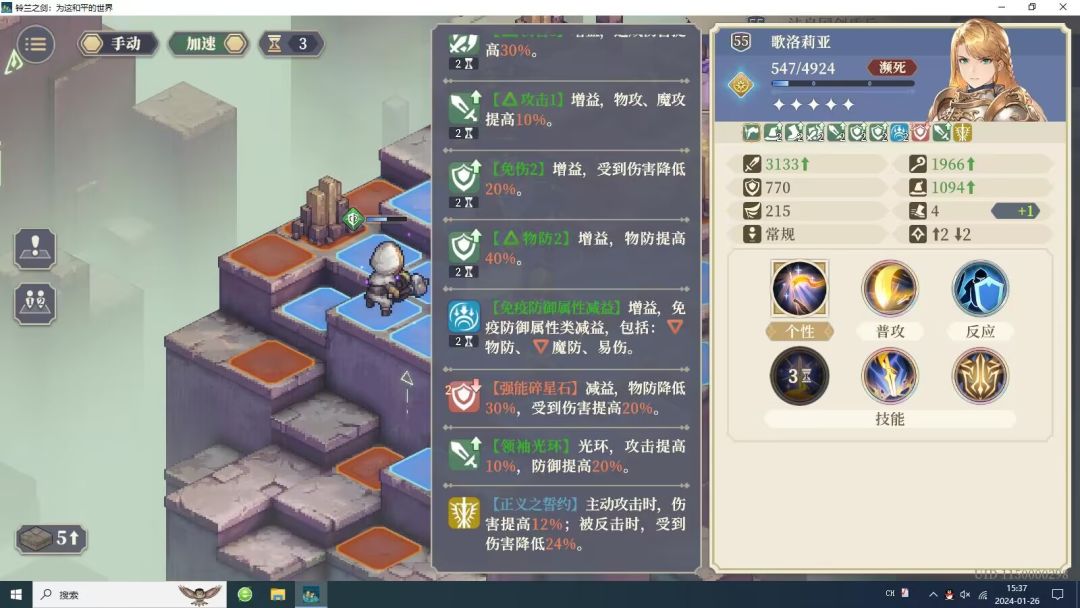 从防御力看,歌洛莉娅防御加了60%,防御增幅生效防御应该有绿色箭头提升,但实际上吃了两个减防后防御不升不降。 所以建议不要消耗石头点王女的防御增幅技能。