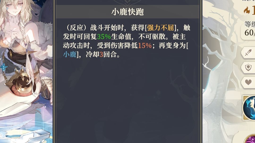 一个带群控的进攻型辅助,速度快,机动性高,但技能组有点拉胯,有用的技能就几个,有点像2.0设计的原始人。想要厉害就需要5星+专武,综合推荐度一般。下面简单说说她的亮点。 一、高输出辅助 小鹿的个性和技能会给敌人施加梦魇debuff,这个没啥大用(伤害-5%,受伤+5%)。但再次施加梦魇就会额外施加一个迷梦回廊debuff,这个状态会储存敌人受到伤害的20%(5星30%),在下一次被施加迷梦回廊的时