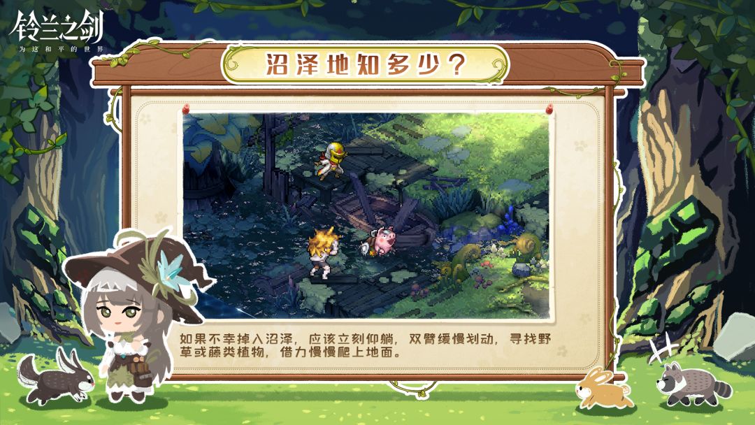 团长对沼泽地形熟悉吗? 为了能在活动关卡中安全地探索,小场记特意向芙拉维娅请教了相关知识! 今天的课题是:如果不幸掉入沼泽要如何自救? 答案是:应该立刻仰躺,双臂缓慢划动,寻找野草或藤类植物,借力慢慢爬上地面!千万不要用力挣扎,不然就会变成噗露噗露…… #铃兰之剑 #魔女之章